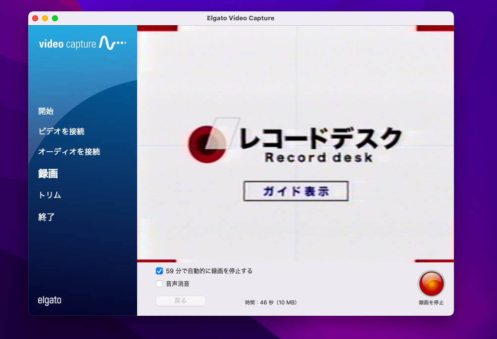USBキャプチャーに付属のソフトを使用してダビングを行います。はじめにソフト上で録画を開始した後、デッキ側で再生を行います。Elgato Video Captureの場合、何分後に自動停止するかを設定できたり、録画後に余分なところカットすることができます。